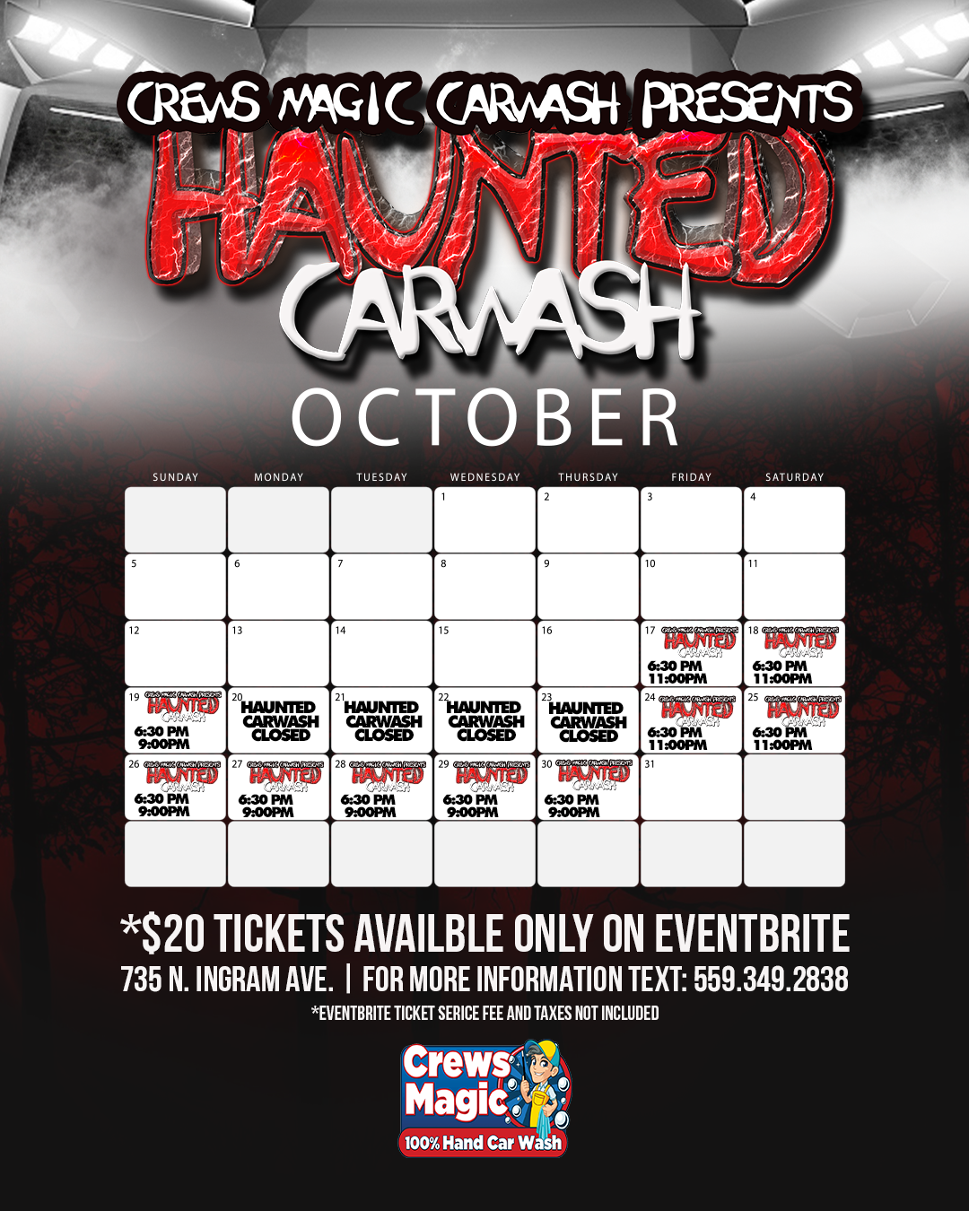 When the pumpkins have been carved, the bats hung, and the spiders have been fed, it's the perfect time to visit the car wash! No, really! Our Haunted Car Wash is exactly what you need to boost your spooky spirit! Crews Magic Car Wash is the scare you need this Halloween season.